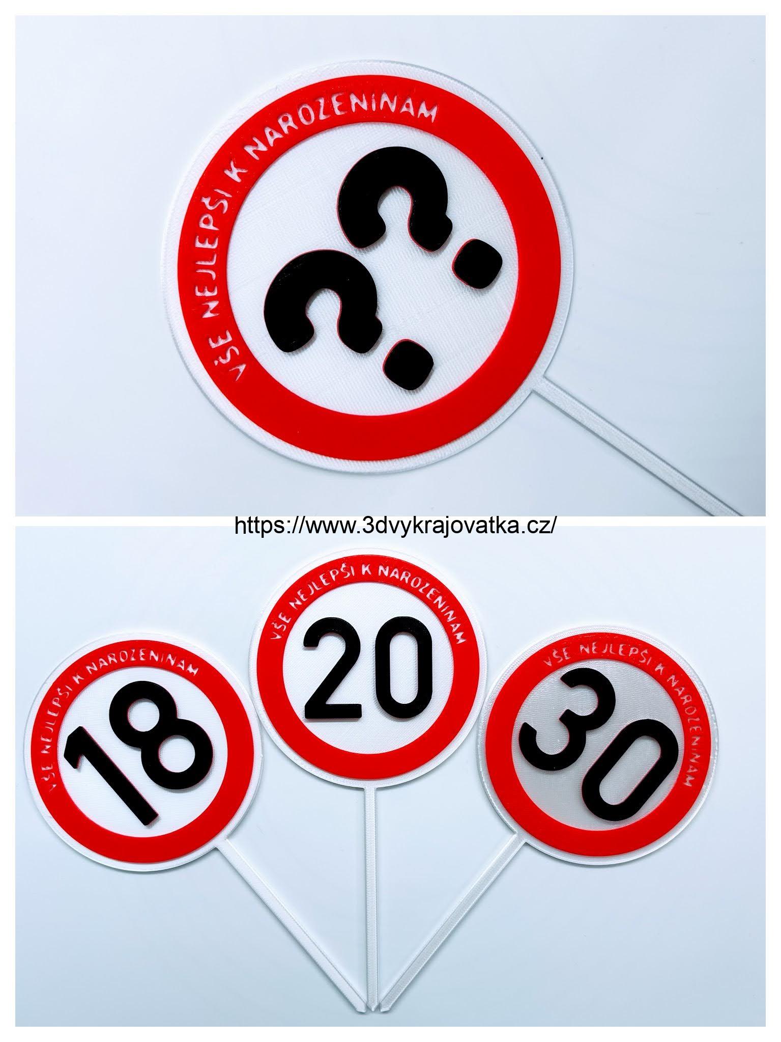 - Zápich - narozeninová dopravní značka (18/20/30/40/50/60/70/80/90 let + na míru číslo)